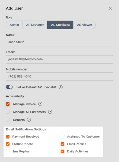 Manage All Customers - If left unchecked, the AR Specialist will only be able to see customers that are assigned to them.