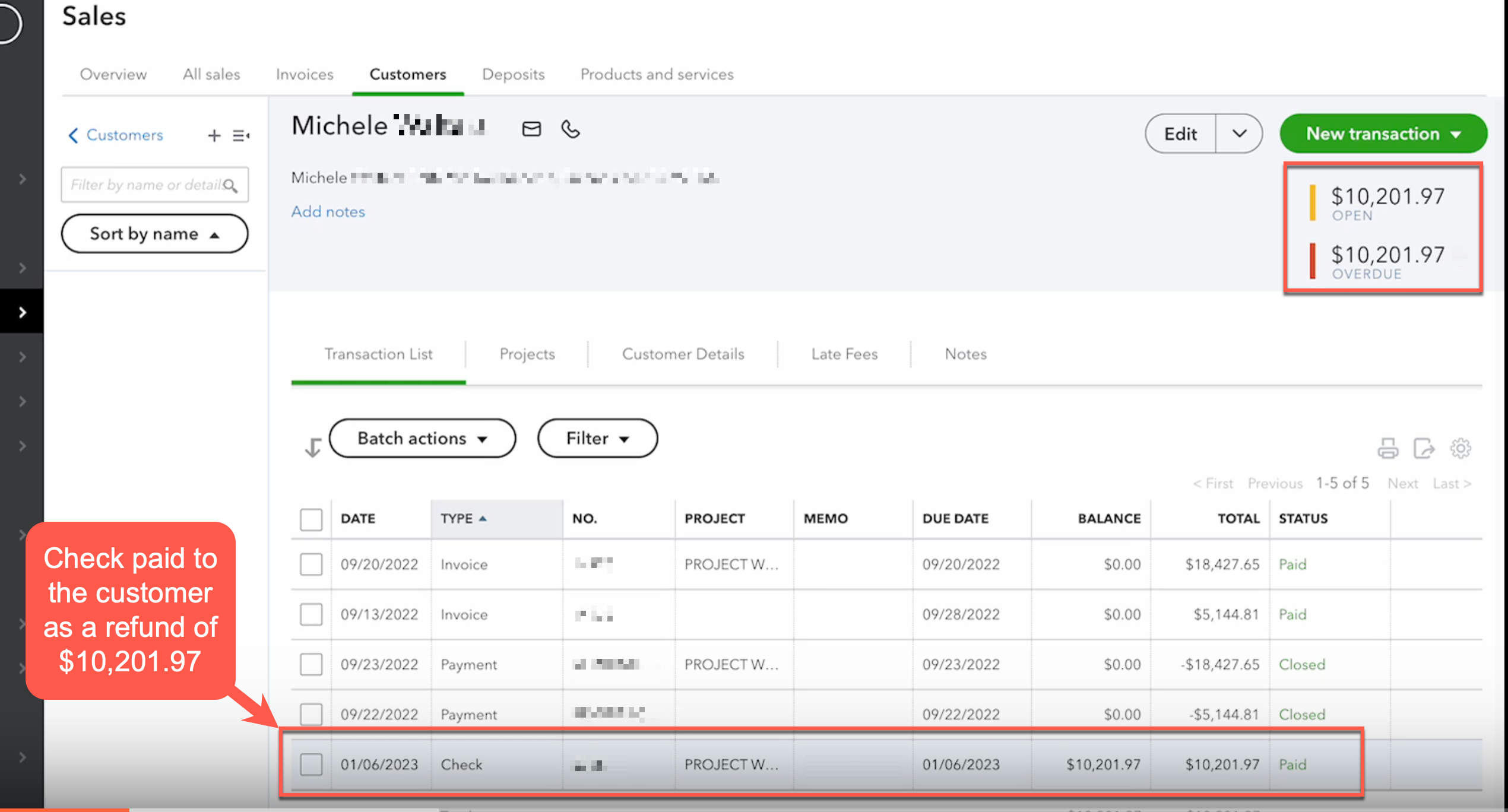 As you can see here, this customer, Michele, had a check made out to her for a refund of $10,201.97