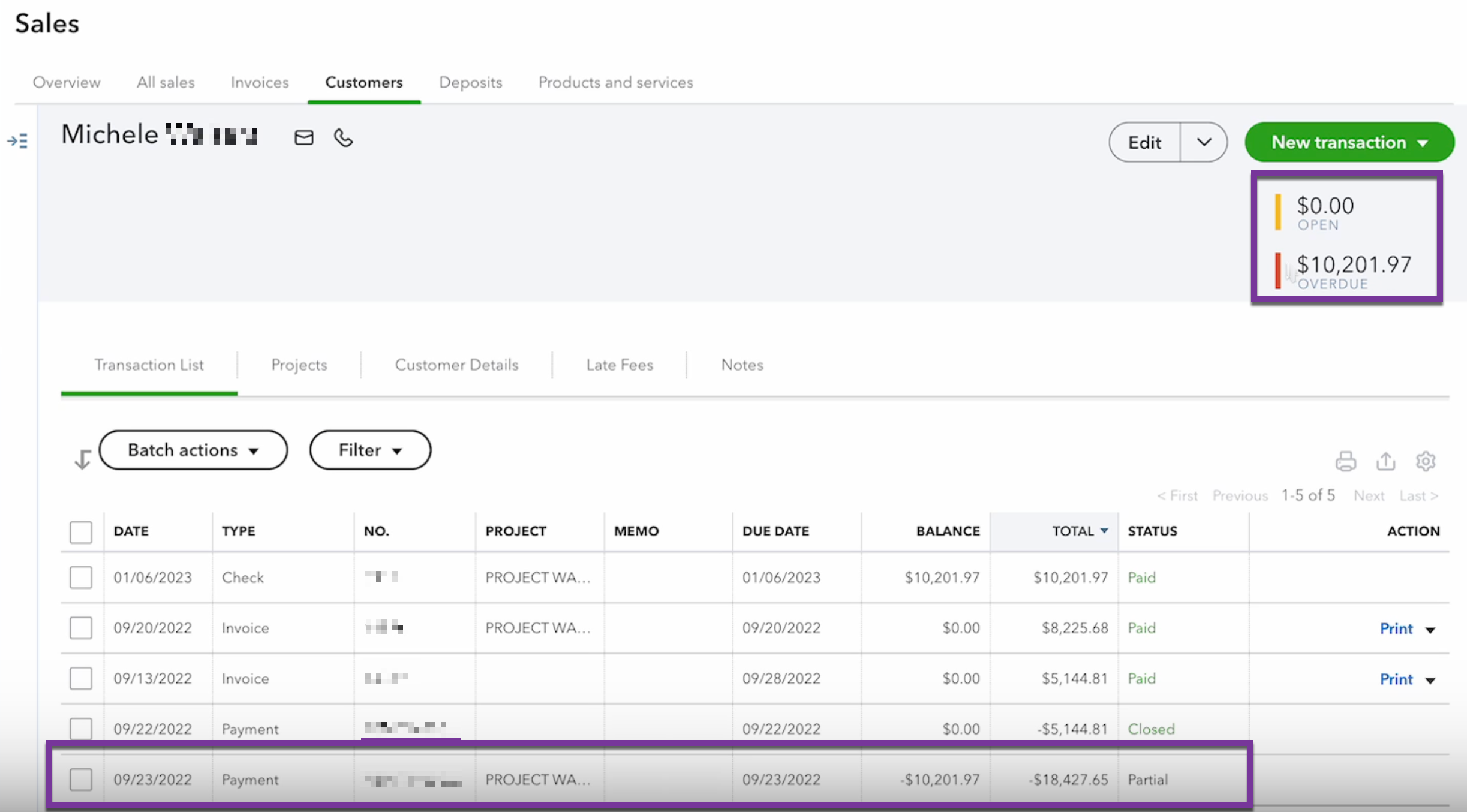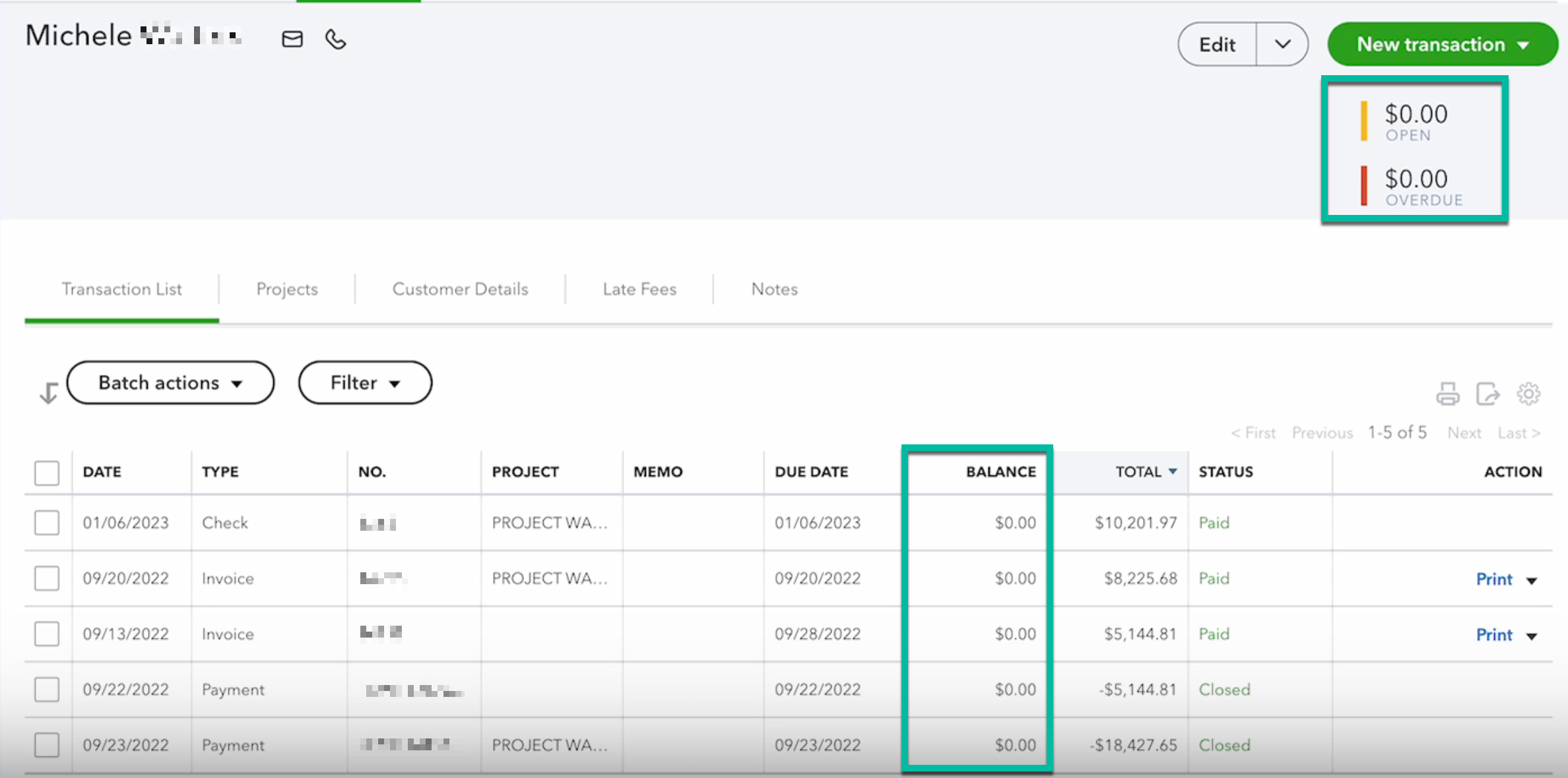That's it! On the payment screen, you will see the Open and Overdue balance 0'd out as well as the line item balances: