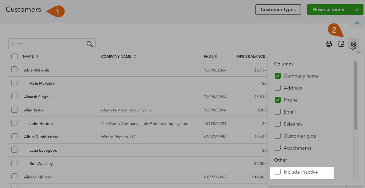 Using the gear icon on the right, scroll down and select the box for "include inactive"