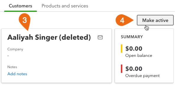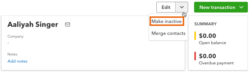 Once the customer is active, you can make any changes you need to the profile. To deactivate the customer again, simply use the drop-down on the customer profile to mark them as inactive.