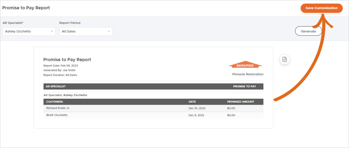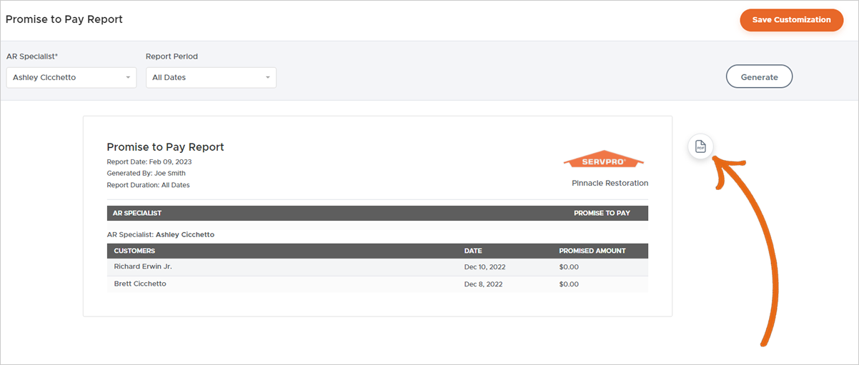 Promise to Pay Report.